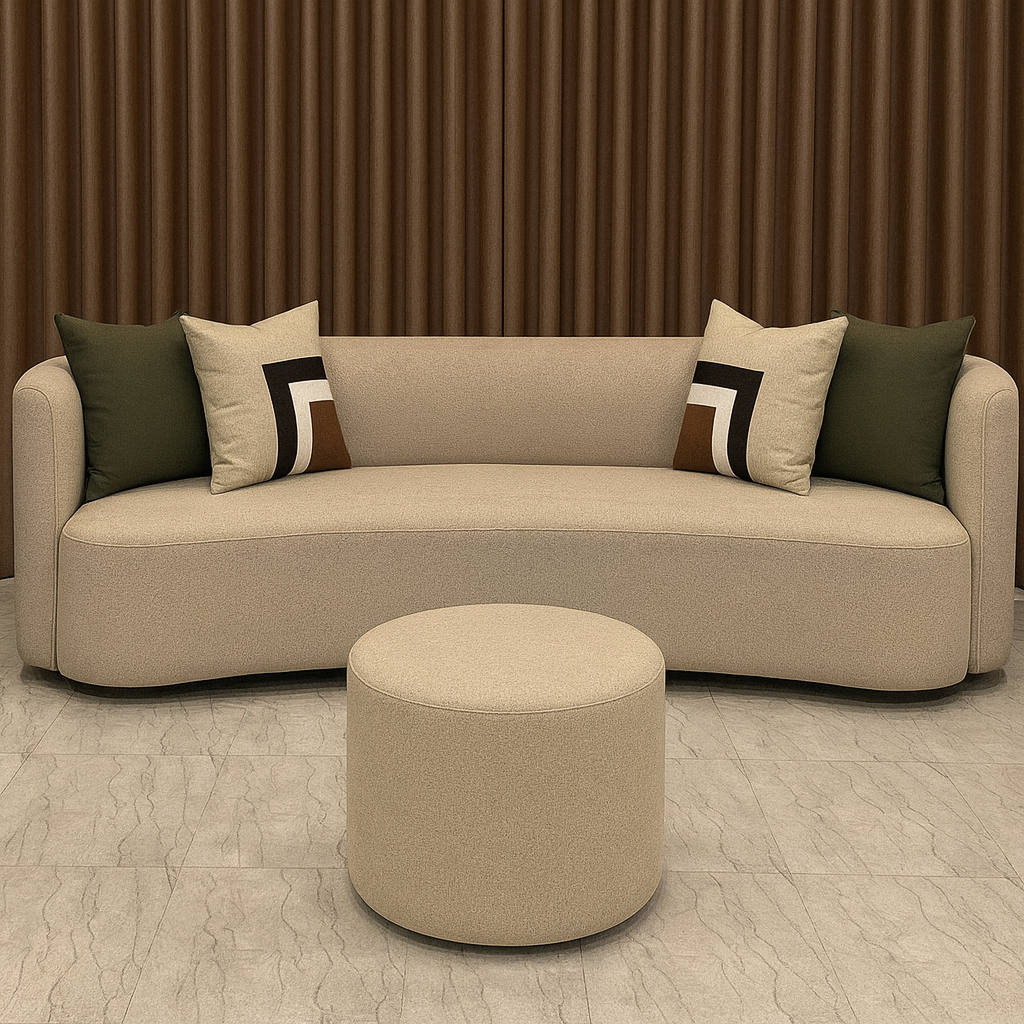صنع كرسي أبو ثلاثة نفر من مواد فاخرة تضمن الأداء العالي والمتانة الطويلة. الإطار مصنوع من هيكل معدني قوي أو خشب فاخر (اعتمادًا على الطراز)، مما يجعله قادرًا على تحمل الأوزان الثقيلة دون التأثر. يساهم الحشو الكثيف والقماش عالي الجودة في تحسين الراحة العامة مع الحفاظ على مظهر أنيق ومميز. كل زاوية من الكرسي مصممة بعناية لتعطي شعورًا بالجودة والفخامة.